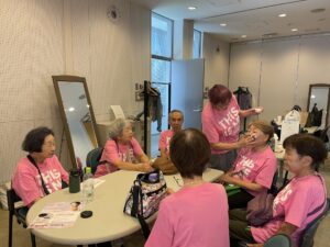 最高年齢はなんと89歳。美容家でもプロのメイクアップアーティストのちょっちーさんが本番前に健康教室の皆様にお化粧をしてくださいました。