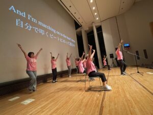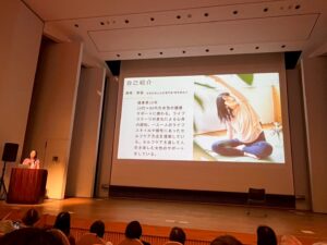 女性の健康についての講演は呼吸を会場の皆さんで実践しました。最後はフィナーレでThis is me。